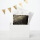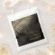 Opt for a striking, glitz and glam look by using the pieces in this wedding suite as shown, with jewels cascading off the diamond-encrusted palm leaves or delete the jewel layers for a slightly more conservative look. This set features leaves in shimmering gold against a textured background the rich colour of black coffee. The wedding 'Love & Thanks' favour bag shown here has a border of sparkling leaves, an elegant Serif font with the bride and groom's name and wedding date. Easily enter your own wedding details using the provided template. View the collection link on this page to see all of the matching items in this beautiful set or search ID830 to see additional colour options for this design.