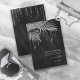 Opt for an Old Hollywood glam look by using the pieces in this wedding suite as shown, with jewels cascading off the diamond-encrusted palm leaves or delete the jewel layers for a slightly more conservative look. This set features leaves in shimmering silver against a dark charcoal, textured background. The wedding invitation shown here has a corner border of sparkling leaves, and an elegant Serif font to add to the romance. Easily enter your wedding details using the provided template. View the collection link on this page to see all of the matching items in this beautiful set or search ID830 to see additional colour options for this design.