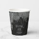 Opt for an Old Hollywood glam look by using the pieces in this wedding suite as shown, with jewels cascading off the diamond-encrusted palm leaves or delete the jewel layers for a slightly more conservative look. This set features leaves in shimmering silver against a dark charcoal, textured background. The wedding paper cup shown here has a border of sparkling leaves, a personal 'Thank You' message and the bride and groom's names and wedding date. Easily enter your details using the provided template. View the collection link on this page to see all of the matching items in this beautiful set or search ID830 to see additional colour options for this design.