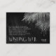 Opt for an Old Hollywood glam look by using the pieces in this wedding suite as shown, with jewels cascading off the diamond-encrusted palm leaves or delete the jewel layers for a slightly more conservative look. This set features leaves in shimmering silver against a dark charcoal, textured background. This wedding 'Wishing Well' card features a corner border of sparkling leaves, and an elegant Serif font to add to the romance plus a template to easily add your initials and wedding date. Choose from three different original poems to suit your desired gifting options for your guests. View the collection link on this page to see other verses in this beautiful design or search ID830 to see additional colour choices for this design.