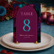 Chic elegant jewel tones burgundy flowers wedding Table Number. Add a touch of sophistication to your wedding tables with this chic and elegant jewel-toned floral table number sign. Featuring a stunning arrangement of rich burgundy, navy, fuchsia, magenta, turquoise, and purple flowers, this design effortlessly enhances your wedding décor. Perfect for guiding guests to their seats with style, this table number sign combines modern elegance with a vibrant floral aesthetic, making it a beautiful addition to your wedding reception.