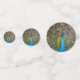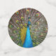 Original artwork of a colourful show off peacock on display. The iridescent tail feathers glow in shades of blue, teal, green, and purple giving this proud bird the appearance of royalty. The vibrant colours of this majestic pea fowl shine in this lifelike art that fills the entire design area. Peacocks are symbols of beauty, grace, majesty, pride, and wealth. Because peacocks are associated with royalty, they are seen as good luck.