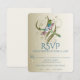 Send guests a simple and elegant jewelled dragonfly wedding RSVP card. RSVP card design features a cream and beige gradient background and a multi-coloured dragonfly with jewelled embellishments against elegant flowers and green botanical artwork. Text layout features fancy script and modern typography. Additional wedding stationery available with this design as well.