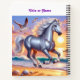 Two silver Horses wearing some jewels are galloping near the ocean, printed on front and back of a Notebook.