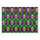 jewellery, background on Mardi Gras of purple and green rhombus, decorated gold lilies.