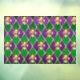 jewellery, background on Mardi Gras of purple and green rhombus, decorated gold lilies.