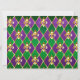 jewellery, background on Mardi Gras of purple and green rhombus, decorated gold lilies.