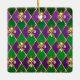 jewellery, background on Mardi Gras of purple and green rhombus, decorated gold lilies.