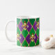 jewellery, background on Mardi Gras of purple and green rhombus, decorated gold lilies.