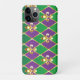 jewellery, background on Mardi Gras of purple and green rhombus, decorated gold lilies.