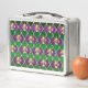 This is a standard metal lunchbox that appears to work just fine. We designed this box ourselves with an uploaded photo and custom text on the front and back. It looks absolutely beautiful except the front of the lunchbox is not centered like it shows in the photo. The print borders don't align with the inset flat part of the box where the preview photo online showed it perfectly centered in there. The back looks nice and centered though.