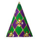 jewellery, background on Mardi Gras of purple and green rhombus, decorated gold lilies.