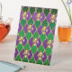 jewellery, background on Mardi Gras of purple and green rhombus, decorated gold lilies.