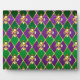 jewellery, background on Mardi Gras of purple and green rhombus, decorated gold lilies.