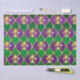 jewellery, background on Mardi Gras of purple and green rhombus, decorated gold lilies.