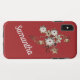 Gorgeous red XS Max case with gold and white flowers and swirls. Looks like expensive jewellery design. Add your own personal name in clean white text.. Other iPhone case choices available.