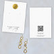 This modern signature script jewellery holder earring display business card is ideal for displaying your small business handmade jewellery. A simple and professional way to introduce your business. Business logo, QR code, social media included in the design of this display earring business card for you to use. Personalise your details to create your own unique business card.