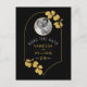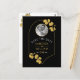 This stunning photo Save the Date announcement postcard showcases a stunning design inspired by gold jewellery, with a combination of frame and leaf motifs. It has a modern look and elegantly displays your custom text in a gold trim that curves at the top and ends to a point at the bottom, surrounded by branches and foliage against a black backdrop.