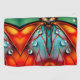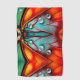 This stunning macro photograph captures the breathtaking detail of a butterfly's wing adorned with glistening dewdrops. The wing displays a spectacular gradient of color, shifting from fiery reds and vibrant oranges to a cool, calming turquoise. Each tiny scale creates an intricate, cellular pattern, beautifully magnified by the crystal-clear water droplets that rest on the surface like precious jewels. This image is a celebration of the delicate, vibrant, and often unseen beauty of the natural world.