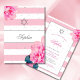 Pink roses with silver spots Hebrew Naming Ceremony invitation.
