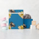 This pretty blue gift wrap has a little Pug dog, wearing a blue yarmulke with a Star of David and a Menorah sitting in front of him, in a repeating pattern…great for all Jewish occasions!