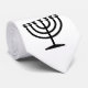 This design features an illustration of a menorah, used by Jewish people to celebrate the eight-day holiday of Hanukkah. The menorah is a nine-branched candelabrum that is lit during Hanukkah. Eight of the nine branches hold lights (candles or oil lamps) that symbolise the eight nights of the holiday; on each night, one more light is lit than the previous night, until on the final night all eight branches are lit. The ninth branch holds a candle, called the shamash (which means "helper" or "servant"), used to light the other eight. The Hanukkah menorah commemorates, but is distinct from, the seven-branched menorah used in the ancient Temple in Jerusalem