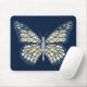 Patterns inspired by traditional Jewish mosaics and designs decorate the wings, body, and antennae of this monarch butterfly. "Peace" written in Aramaic script sits in the spots on the wings.