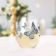 Patterns inspired by traditional Jewish mosaics and designs decorate the wings, body, and antennae of this monarch butterfly. "Peace" written in Aramaic script sits in the spots on the wings. This glassware is also available in can glass and rocks styles.