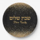Jewish Shabbat Shalom Elegant Glitter Gold Paper Plate
