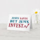 A funny saying - "Jesus saves but Jews Invest". With grunge style letters and an arrow pointing up representing some kind of successful investment. This is a humourous Jewish twist for the phrase "Jesus saves", suggesting Jewish abilities with money and finance. This item can be a great gift for your Jewish friend at various Jewish Holidays and occasions.
