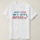 A funny saying - "Jesus saves but Jews Invest". With grunge style letters and an arrow pointing up representing some kind of successful investment. This is a humourous Jewish twist for the phrase "Jesus saves", suggesting Jewish abilities with money and finance. This item can be a great gift for your Jewish friend at various Jewish Holidays and occasions.