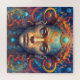 Jigsaw puzzle of an alien portrait of a girl fantasy art. Colorful portrait of a girl looking at you with blue green eyes. The jigsaw puzzle was made with very vibrant colors.