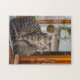 Customisable jigsaw puzzle of two cats sitting snug together on the kitchen work bench by the window.