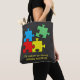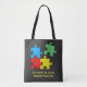 Jigsaw Puzzle Pieces Tote Bag with customisable text and background colour.