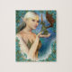 A pretty fantasy jigsaw puzzle, great for an unique gift, fantasy art by moonlake designs, with Elf And Baby Dragon in her hand