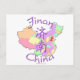 Jinan of Shandong province on a colourful map of China includes the Chinese symbols for 'Jinan' and its location is marked on the map with a heart and flag. A fun, unique gift! Designed by Hendrika of RedThreadMaps.com