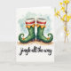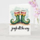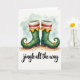 Bring a touch of whimsy to your holiday greetings with 🎅🏼 this adorable Christmas card! The vibrant green elf boots with orange accents 🎄 are sure to bring a smile to anyone's face. The snow or glitter sprinkled ground and light blue watercolor wash provide a festive setting for these playful characters. The elegant "jingle all the way" text in black script adds a touch of sophistication to this cheerful design. Spread joy and laughter this holiday season with the perfect card that captures the spirit of the season! 🎁