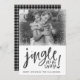 Jingle All the Way | Modern Photo Snow Christmas Card - Card features your gorgeous photo and hand lettered typography that reads "Jingle All the Way". Editable Greeting reads " Merry Christmas" and is personalised with your name. Our high quality template makes it so easy for you to personalise your card to make it uniquely yours. Shown with black and white and framed in snow but is also available with colour photo. Card is part of a collection.