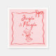 Jingle and Mingle! Whimsical hand drawn doodle Christmas party napkins in pink and red.