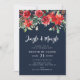 This design features winter watercolor floral detail and navy blue colour. Christmas party invitation.