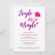 Modern Christmas holiday Jingle and Mingle party invitation featuring a trendy handwriting typography script, a little heart, and a Santa hat in trendy purple and hot pink.