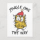 Funny and crazy looking owl wearing a Santa hat and the quote "Jingle owl the way". A cool and funny kind to celebrate Christmas eve.
