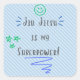 "Jiu Jitsu is my superpower!" sticker design in blue.