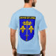 Features the coat of arms of Joan of Arc on the back and front pocket.