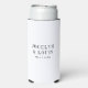 Modern wedding favour can coolers featuring a minimalist black and white design with your names in a large font along with your wedding date. This design is simple enough for a formal wedding yet makes a bold statement.