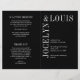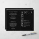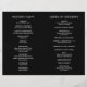 Modern folded wedding program (printed on paper and comes unfolded) featuring a minimalist black design with your names in a large font along the left side and top. This design is simple enough for a formal wedding yet makes a bold statement.