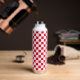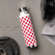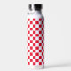 Horse racing colours style water bottle with a classic chequerboard pattern in red and white. This chequered pattern or blocks is one of the traditional jockey silk patterns or racing colours to signify the stable in horse races. A great gift idea for any horse racing fan, jockey, owner, or trainer or a fun practical accessory for any derby day or stakes horse race.