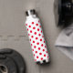 Horse racing colours style water bottle with a classic dot pattern in red on white. Polka dots are one of the traditional jockey silk patterns or racing colours to signify the stable in horse races. A great gift idea for any horse racing fan, jockey, owner, or trainer or a fun practical accessory for any derby day or stakes horse race.