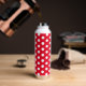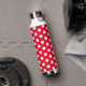 Horse racing colours style water bottle with a classic dot pattern in white on red. Polka dots are one of the traditional jockey silk patterns or racing colours to signify the stable in horse races. A great gift idea for any horse racing fan, jockey, owner, or trainer or a fun practical accessory for any derby day or stakes horse race.