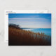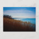 This postcard features a photo of Joe Pool Lake at Cedar Hill State Park, Cedar Hill, Texas. The photo was taken on a beautiful winter day with deep blue sky and water, and the grasses growing along the shore were taller than I am, waving in the breeze, and looked like shining copper in the sun.
